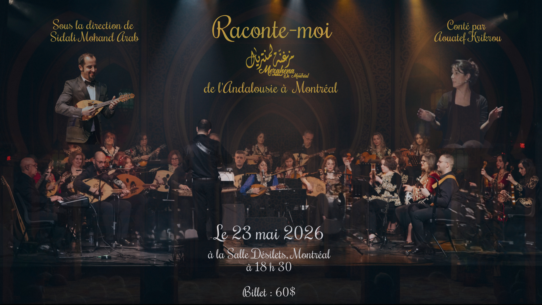 Achat des billets Pour ses 10 ans, l’Association Mezghena de Montréal vous raconte son histoire. Une histoire guidée par une passion commune. Celle d’une musique née sous le soleil d’Andalousie, bercée par les vents d’Algérie et portée jusqu’à Montréal. Raconté par Aouatef Krikrou et interprétée par l’Association Mezghena de Montréal, ce conte et cette musique […]